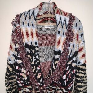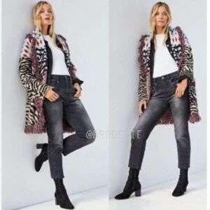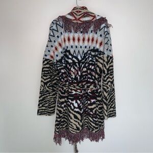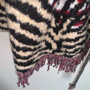 Anthropologie Paloma Fringed Cardigan Animal Print Fringe XL