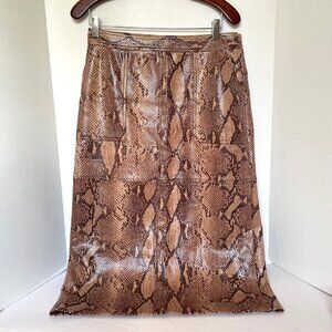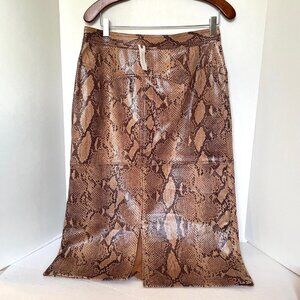 Anthropologie Pencil Skirt Brown Faux Leather Snake Print Knee Length Vegan