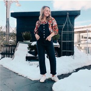 No obvious signs of wear on these awesome overalls. 97% Cotton! So so cute and versatile! First model is wearing a slightly different variation of the overalls (buttons are a different colour)