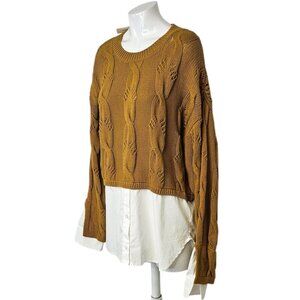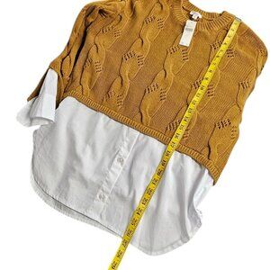Anthropologie Pilcro Cable Knit Twofer Sweater, Layered, Cotton, Size Small, NWT