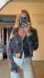 Anthropologie Pilcro Collared Fuzzy Plush Soft Button Down Cardigan Oversized Knit Sweater Top Charcoal Grey Floral