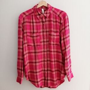Anthropologie Pilcro Hadley Relaxed Pink Plaid Button Up