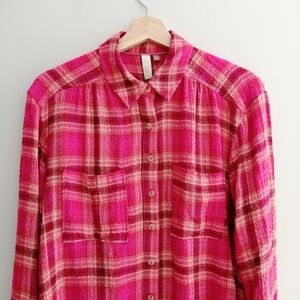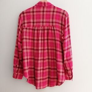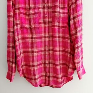 Anthropologie Pilcro Hadley Relaxed Pink Plaid Button Up Small