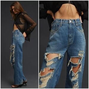 Anthropologie Pilcro Joey high rise straight leg distressed ripped front jeans
