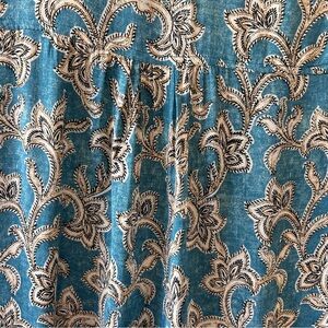 Floral Paisley pattern in turquoise and cream| pit to pit measures 21.5 inches| shoulder to sleeve cuff measures 24 inches| shoulder to shirt hem measures 28 inches