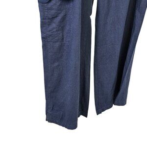 Anthropologie Pilcro Linen Blend Beach Cargo Pants, Blue, Wide Leg, Tie Waist,XL