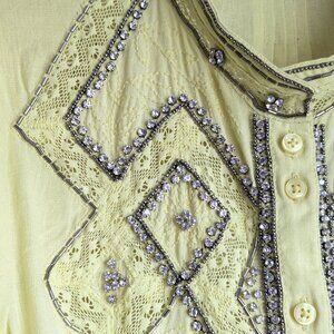 Anthropologie Pilcro Nayeli Beaded Buttondown - Size S - in Very Good Condition, some gems are missing, see last two photos for the noticeable ones.