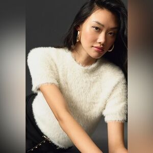 Anthropologie Pilcro Plush Fuzzy Warm White Eyelash Baby Soft Knit Sweater Shirt