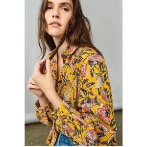 Anthropologie Pilcro Sigourney Corduroy floral print button front shirt