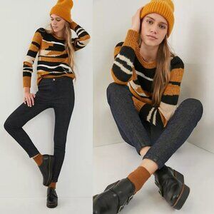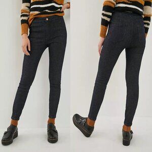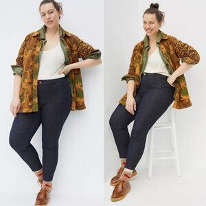 Anthropologie Pilcro and the Letterpress Shimmer High-Rise Denim Leggings in Women's Size 32 Tall. A shimmery finish infuses this stretchy pair with plenty of dazzle and charm, making them a perfect choice for your next virtual happy hour. Retails for $128 US (approximately $178 CAD). 75% cotton, 15% polyester, 4% nylon, 3% metallic, 2% viscose and 1% elastane. Skinny fit. Seamed detail. Back patch pockets. Front zip. Machine washable. Made in China. Very good pre-loved condition. No visible flaws.