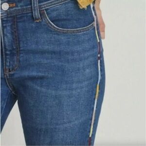 Anthropologie Pilcro Slim Boyfriend Crop Jeans Embroidered Side Stripe Size 28
