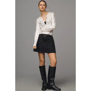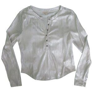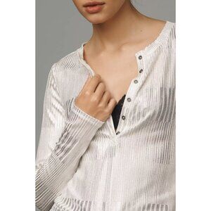 Anthropologie Pilcro The Andie Ribbed Henley Top Shimmer Edition L
