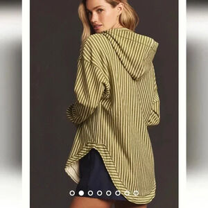 Anthropologie Pilcro Wharfside Hooded Sweatshirt Green and White Stripes