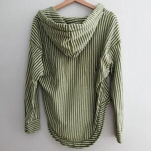 Anthropologie Pilcro Wharfside V Neck Hooded Sweatshirt Green White Stripe Small