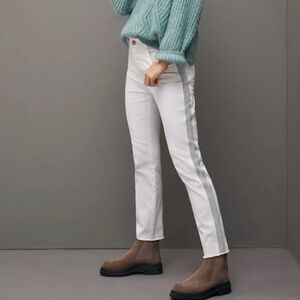 White Denim in a Cotton, Poly, Elastane blend. High Rise fit.