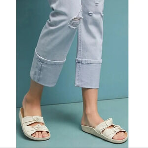 Boho bohemian boyfriend jeans mom jeans cropped distressing light wash Anthro brands