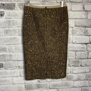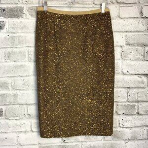 Elevate your wardrobe with this Anthropologie Pink Martini Pencil Skirt in size S. The skirt features a solid pattern and is made of a luxurious Acylic and Polyester/Wool Blend fabric with a knit texture. The garment care instructions recommend hand wash only. The skirt has a mid-rise and a straight pencil style with a rear slit. It comes in a beautiful champagne brown color with glitter, zipper, and sequin accents. Perfect for any occasion, this skirt is versatile and can be dressed up or down. It is suitable for travel, weddings, parties, casual outings, workwear, and business settings. The skirt is lined and has stretch for comfort, making it suitable for all seasons. This skirt is a must-have for any fashion-forward woman who wants to make a statement.
