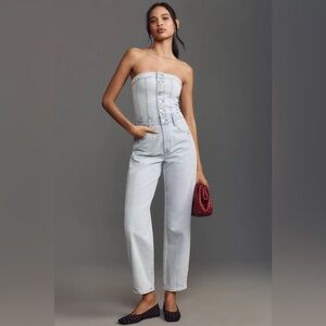🆕 Anthropologie Pistola Daphne Strapless Denim High Rise Barrel Leg Jumpsuit