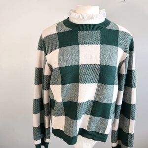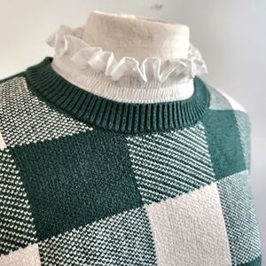Anthropologie Plaid Ruffle-Collar Pullover Sweater Prep Preppy Old Money