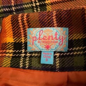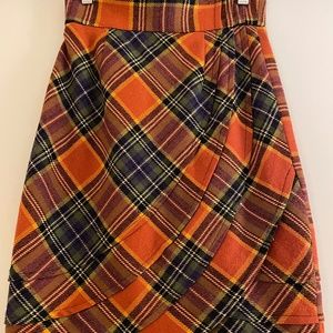 Anthropologie Plenty by Tracy Reese Easy Keeper Plaid Skirt Lined Wool Orange