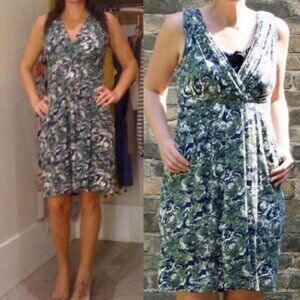 Anthropologie Porridge Woody Nymph Dress in Green Motif and Women's Size XS. Super comfortable everyday dress. Sleeveless. V-neckline. Has pockets! Pullover style. 95% rayon and 5% lycra. Very good pre-loved condition. No visible flaws.