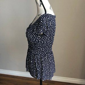 Anthropologie Postmark Polka Dot Navy Blue & white polka dot Peplum top size XS