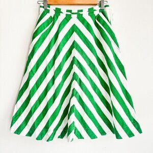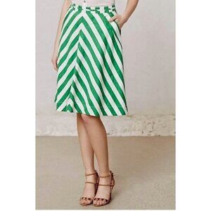 Anthropologie Postmark Wite Green Striped Summer Skirt 0