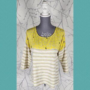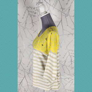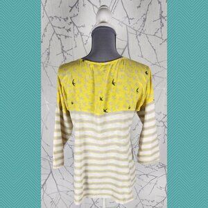 Anthropologie Postmark Yellow Birds Printed Stripe Cotton Top