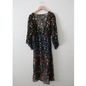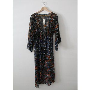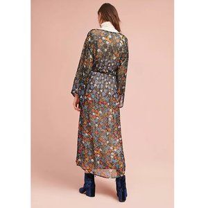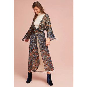 Anthropologie Primrose Kimono / One Size / Black Floral Motif Long Robe