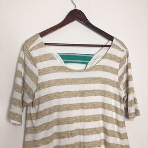 Anthropologie Puella Cream and Tan Striped Swing Top Sz M