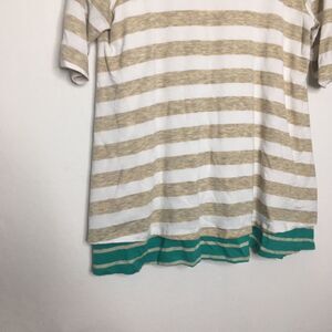 Tan and White Swing Top with Green stripe bottom layered stripe detail