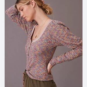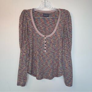 Anthropologie Puff-Sleeved Knit Henley Top S