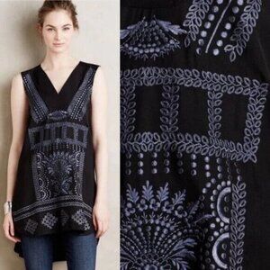 Anthropologie Ranna Gill Black Bohemian Tunic Top Hippie Size XS Blouse Printed