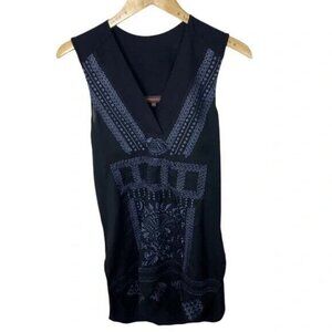 Anthropologie Ranna Gill Channa Tunic Top in Women’s Size XS. Sleeveless. V-neckline. Front is poly and back is rayon. High-low hem. Bohemian hippie print. Side splits at the hem. Very good pre-loved condition. No visible flaws.