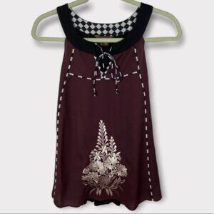 Anthropologie Ranna Gill Embroidered Halter Top Size Small Maroon Burgundy Boho
