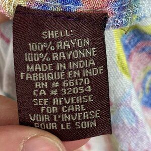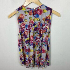 Anthropologie Ranna Gill Faye Floral Top in Women's Size XS. Bright floral print. Sleeveless. Crew neck. 100% rayon. Cutout bib with pleated detail. Button back closure. Very good pre-loved condition. No visible flaws.