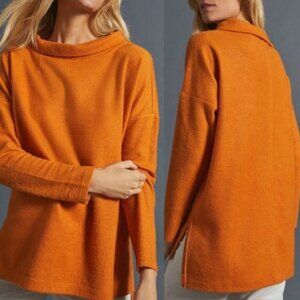 Anthropologie Rib Knit Funnel Neck Sweater Oversized Orange Long Sleeve Boho XS