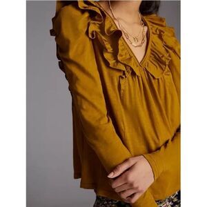 Anthropologie Ruffled Ruffle Down V-Neck Top Shirt Blouse