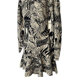 Anthropologie Ruffled Sweater Knit Mini Dress, Printed, Long Sleeve, Size Medium