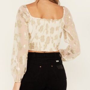 Anthropologie SADIE & SAGE Cham Afterglow Metallic Floral Crop Top Gold/White -L