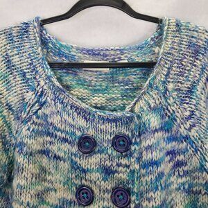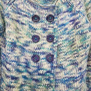 Anthropologie SLEEPING ON SNOW Cardigan Women's L Chunky Wool Blue Marled Button