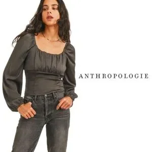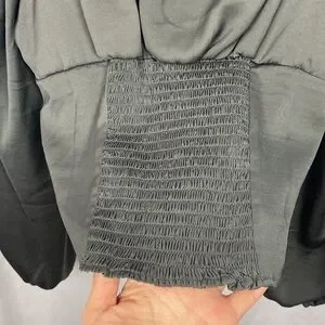 Introducing the Anthropologie Sadie & Sage Satin Minute Stroll Smock Top Blouse in Grey, available in size Small - the epitome of effortless elegance!