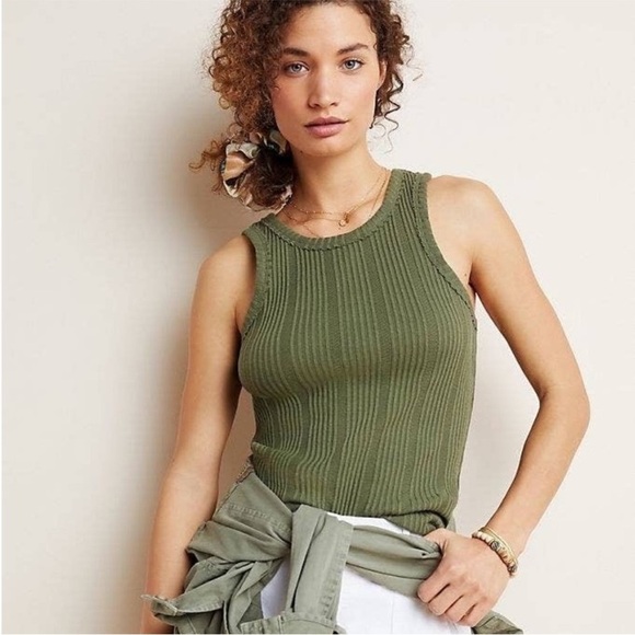 Anthropologie Sage Green Ribbed Tank Top XL