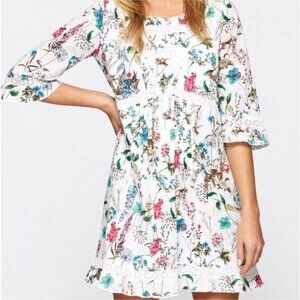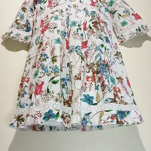 Anthropologie Sanctuary Ellie White Floral Print Lined Eyelet Causal Dress Sz S