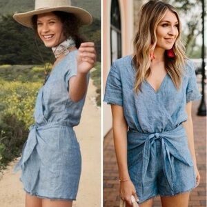 🆕 Anthropologie Sanctuary Linen Montana Tie Front Chambray Romper