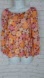 Roomy peasant style top in floral pattern with fun shades of orange, pink, cream, and maroon.