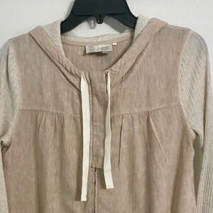Anthropologie Saturday Sunday Tan Cream Linen Ribbed Zip Up Hoodie