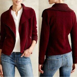 Anthropologie Saturday Sunday Women's Red Burgundy Wool Full Zip Sweater Size S