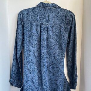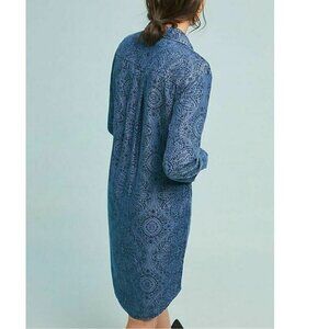 Anthropologie Shirt Dress Small Blue Belted Long Sleeve V-Neck Tencel
