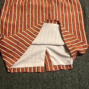 Super cute pattern with little crabs. Pleating details. Fully lined. Concealed zipper at back.